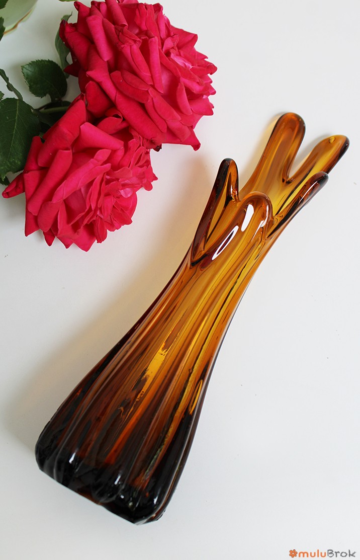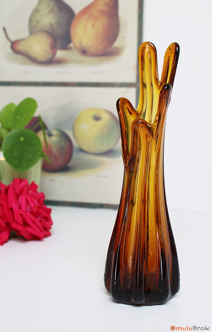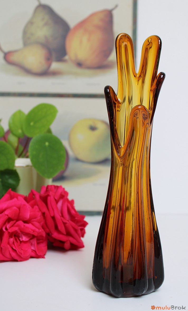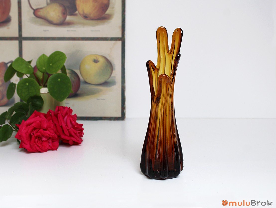 Vase ou soliflore à doigts en verre ambré.