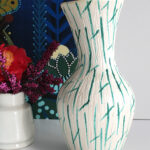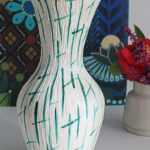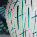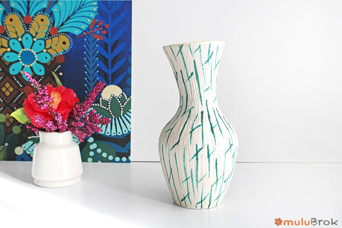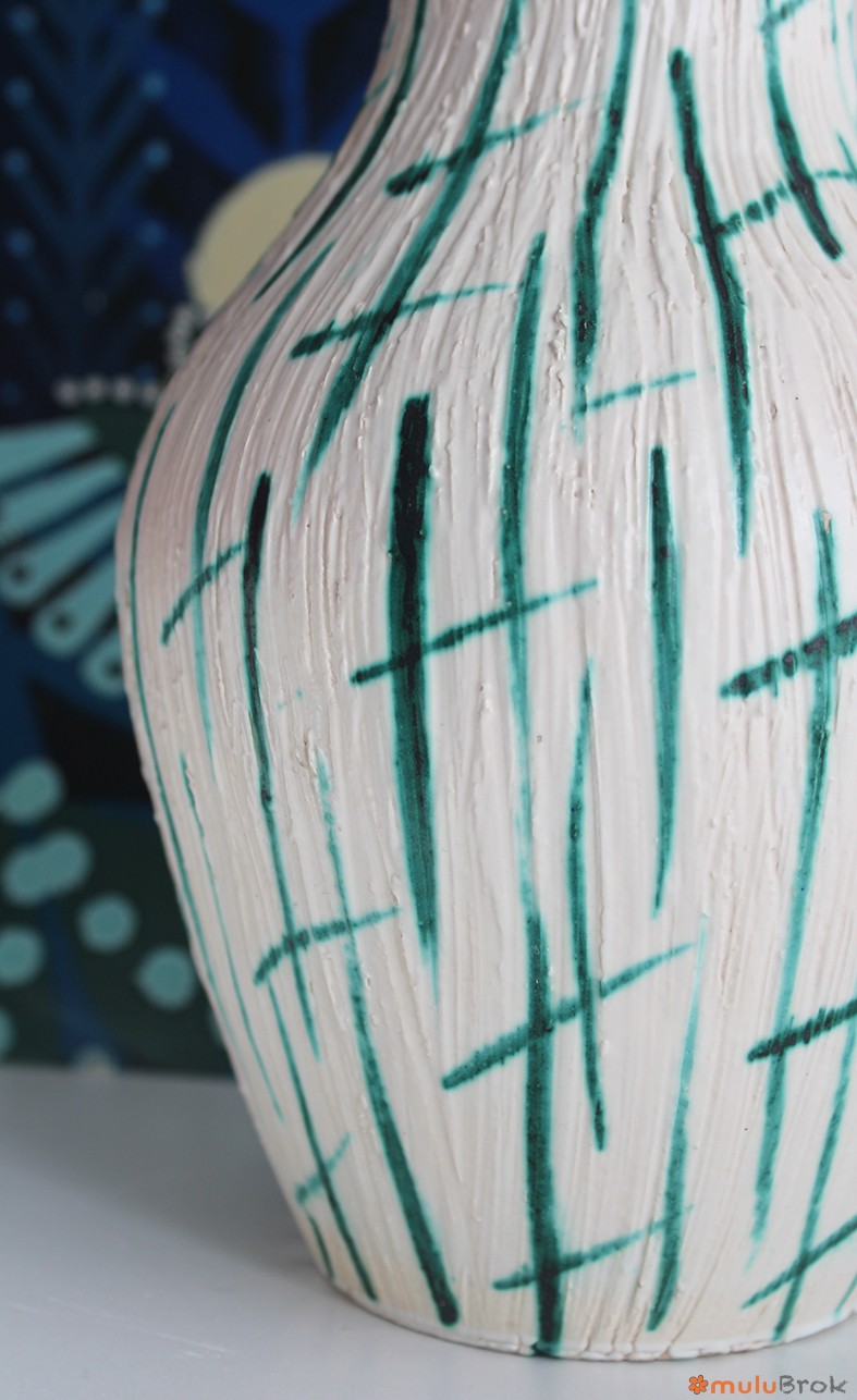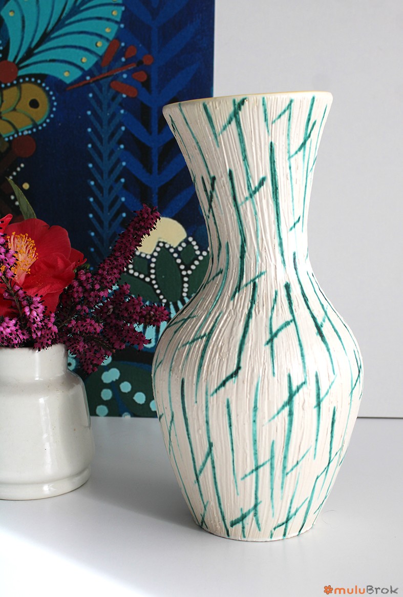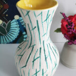 Coloris gris clair et lignes vertes. Intérieur jaune vernissé.