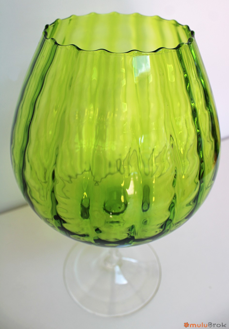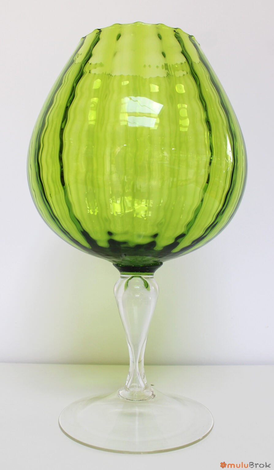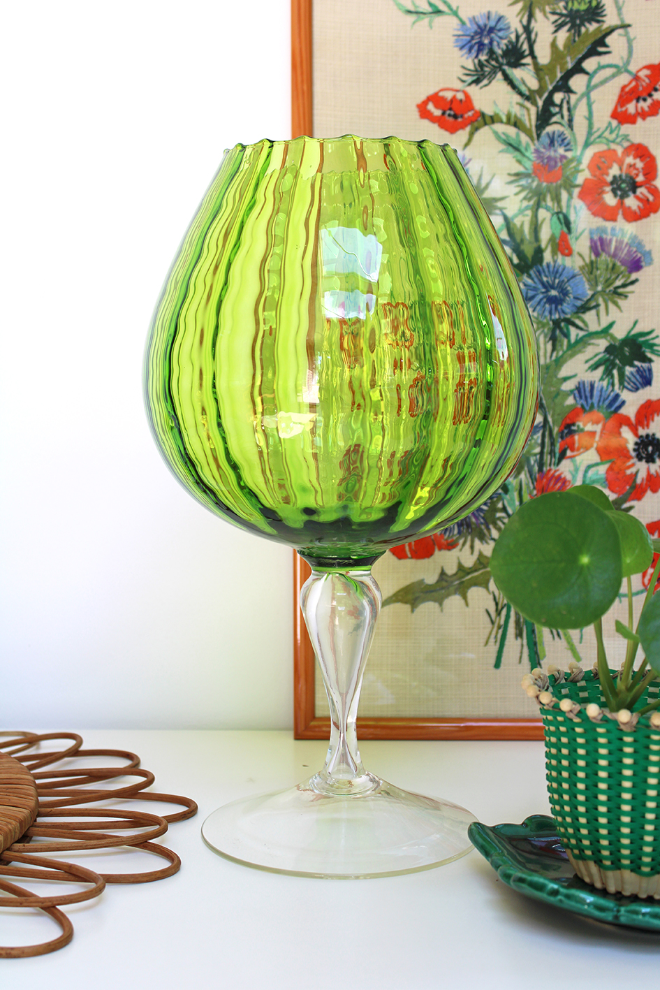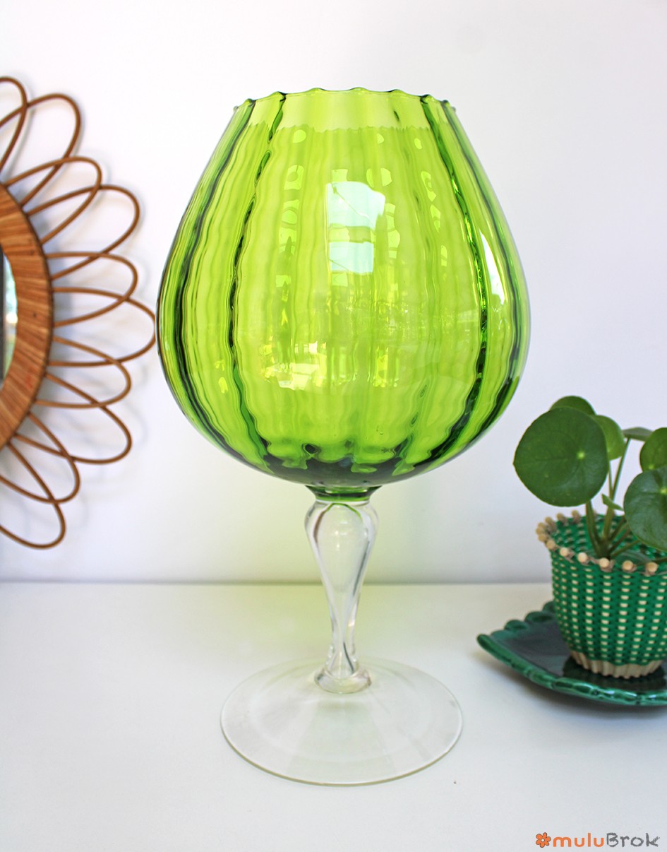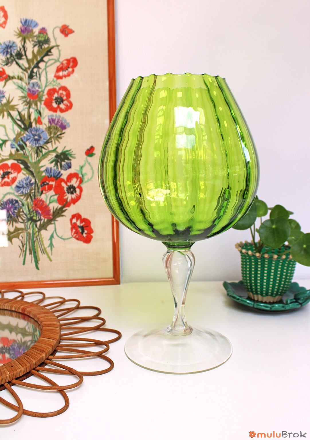 Vase sur pied en verre soufflé Empoli Italie des années 60.