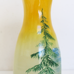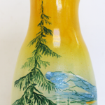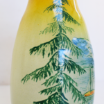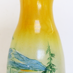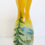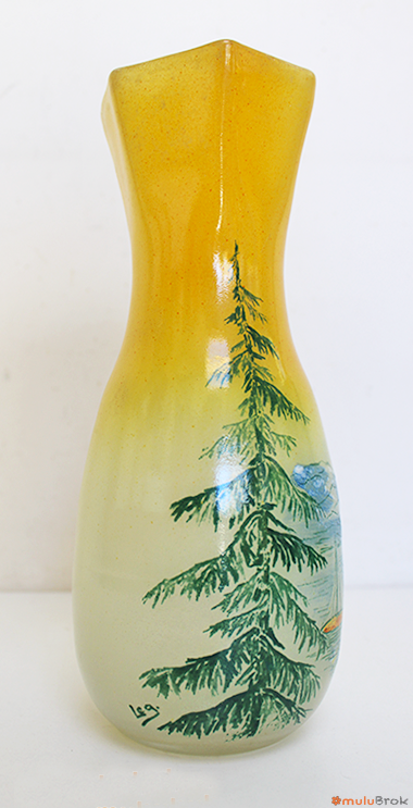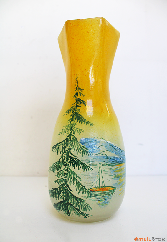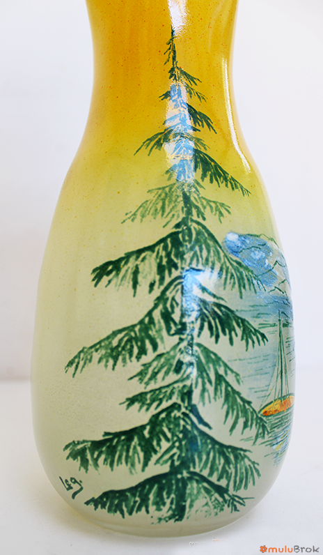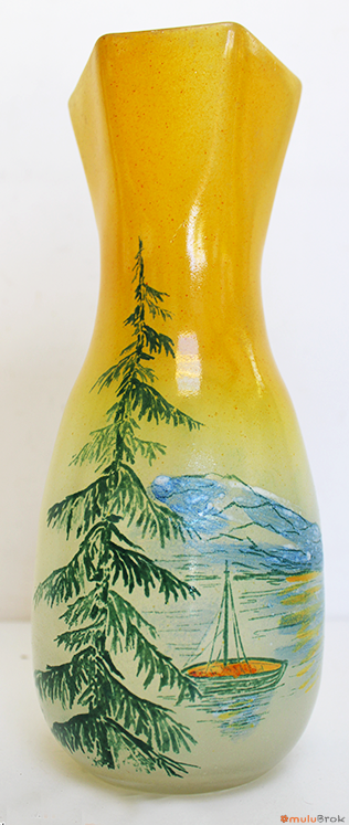 Ancien vase ovoïde soufflé à col hexagonal peint à la main.