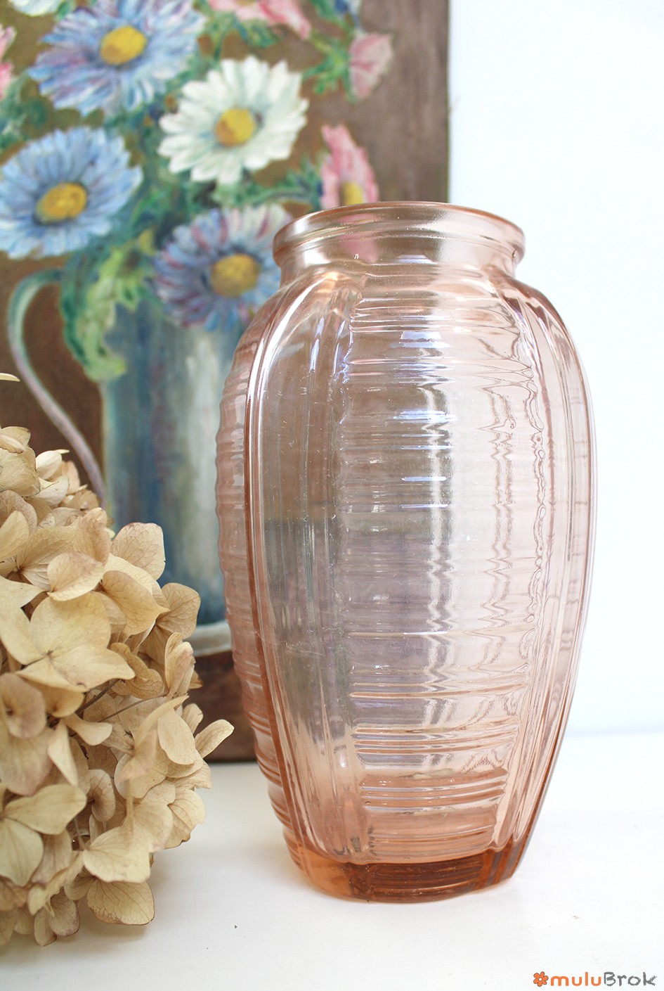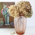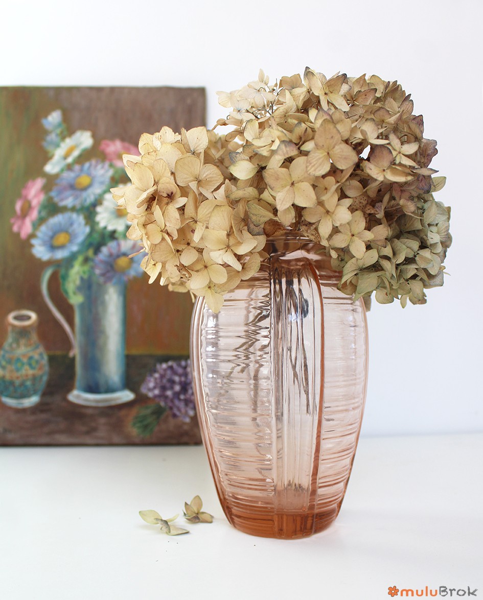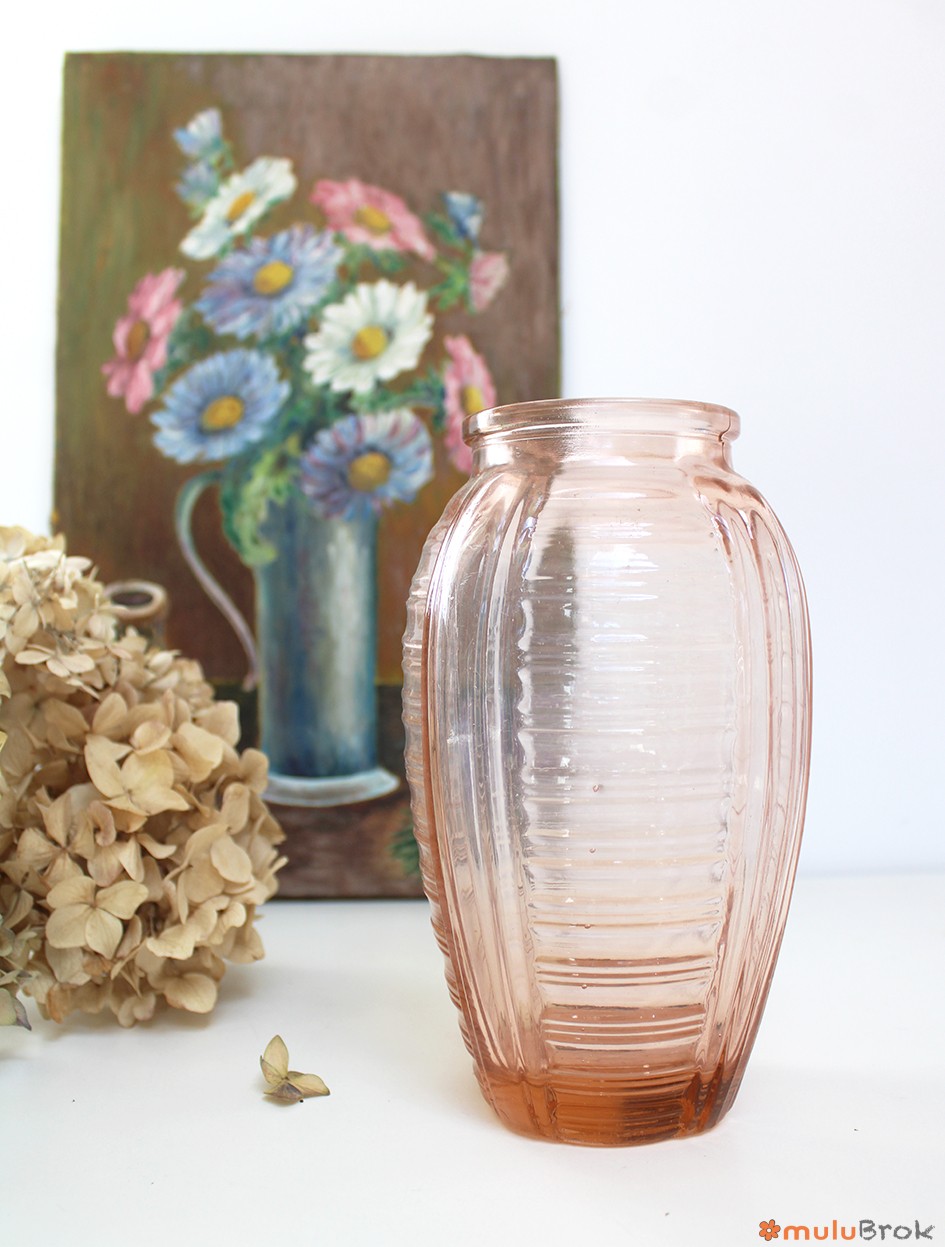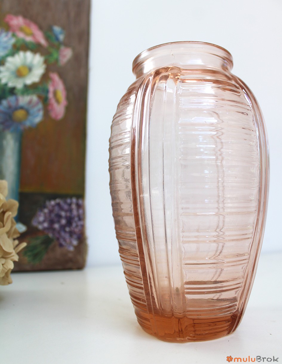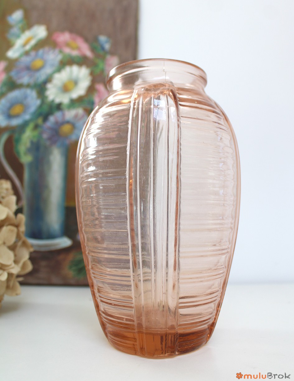 Ancien vase en verre rose, style Art Déco.