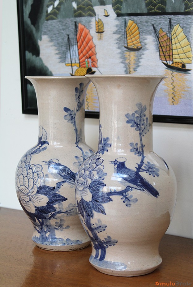 Motif bleu : Fleurs et oiseaux (décors différents).