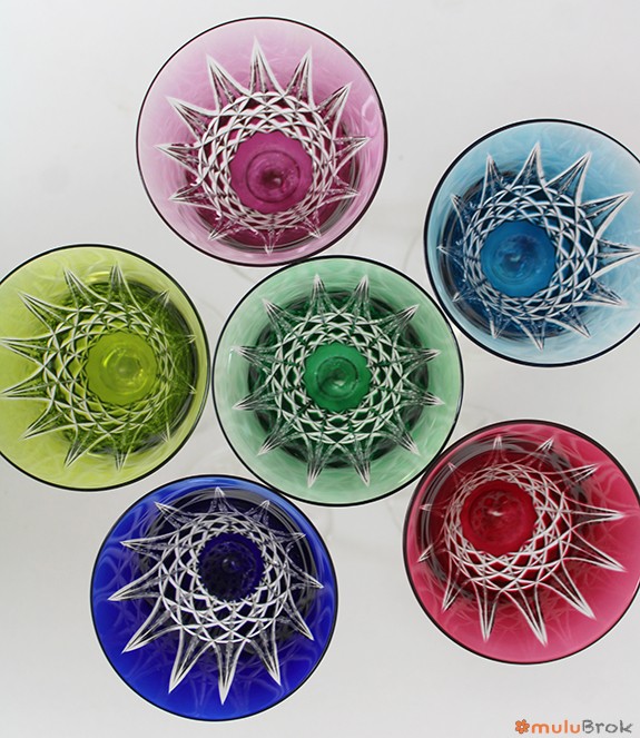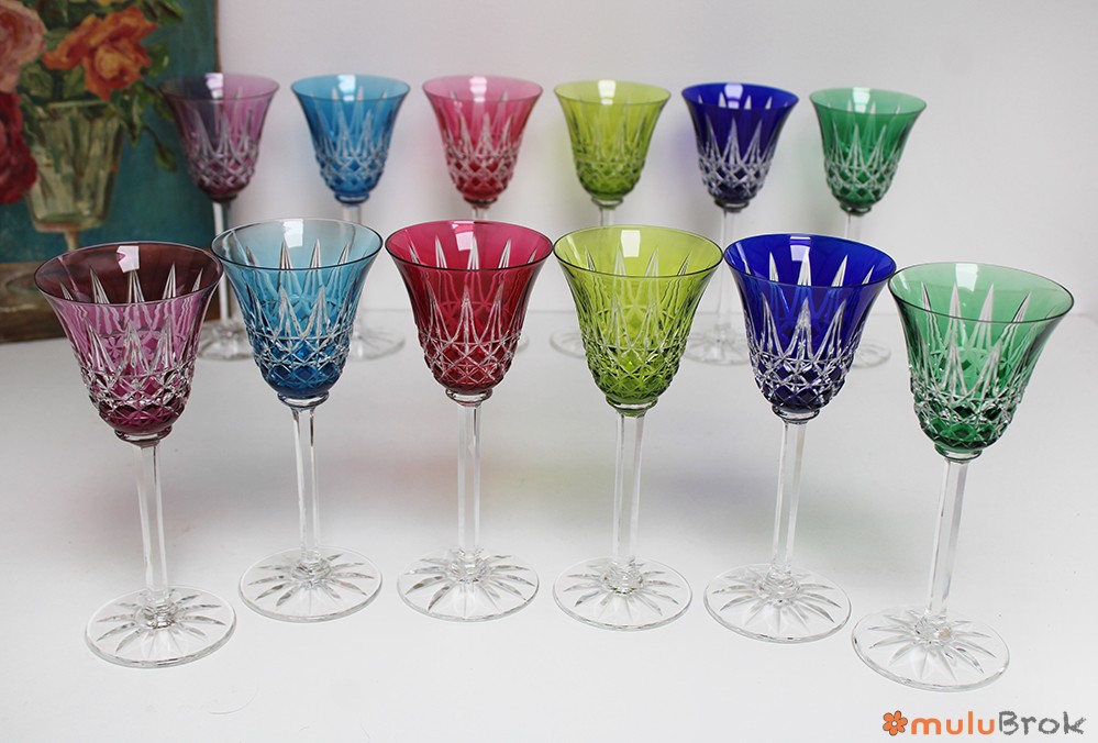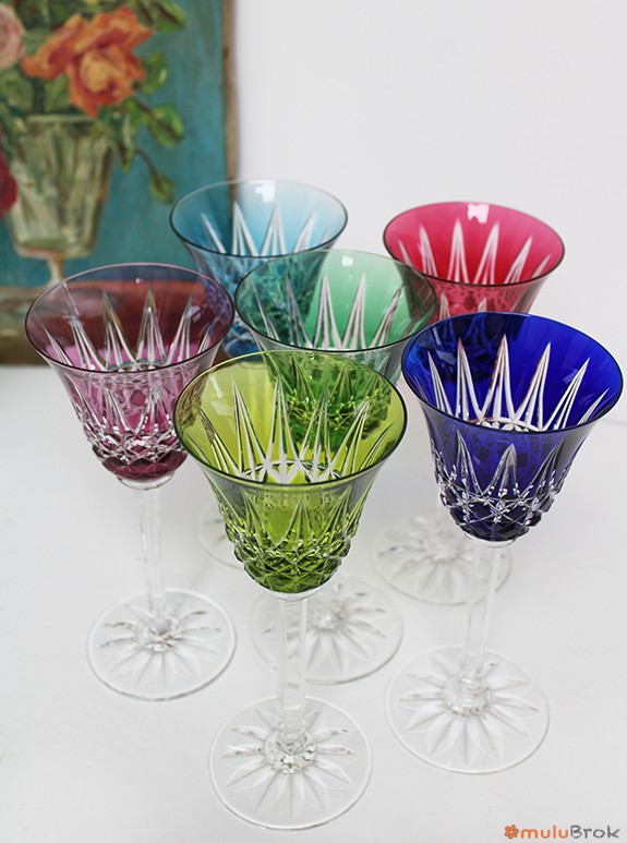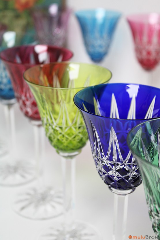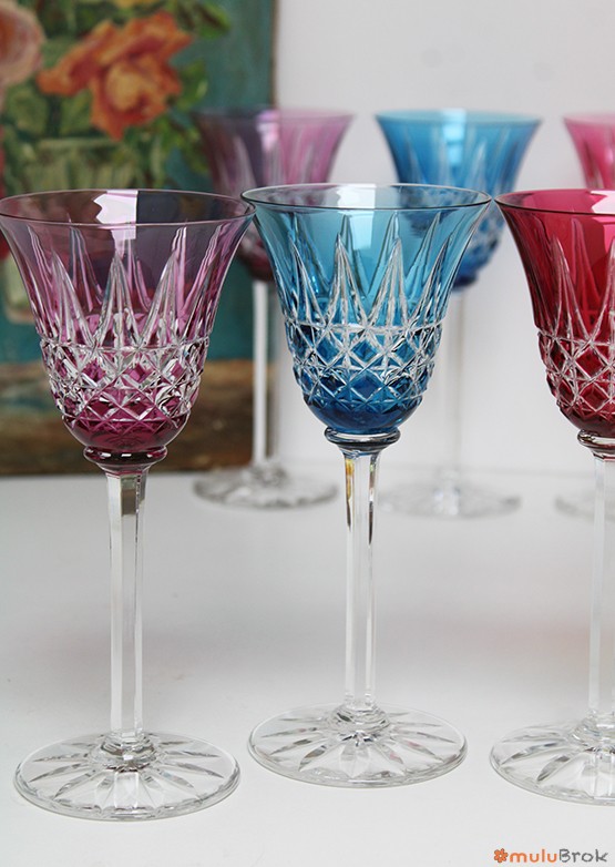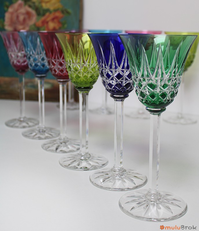 Verres à vin ciselés et colorés.