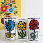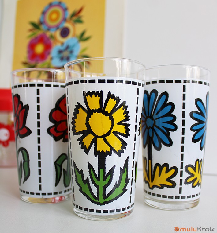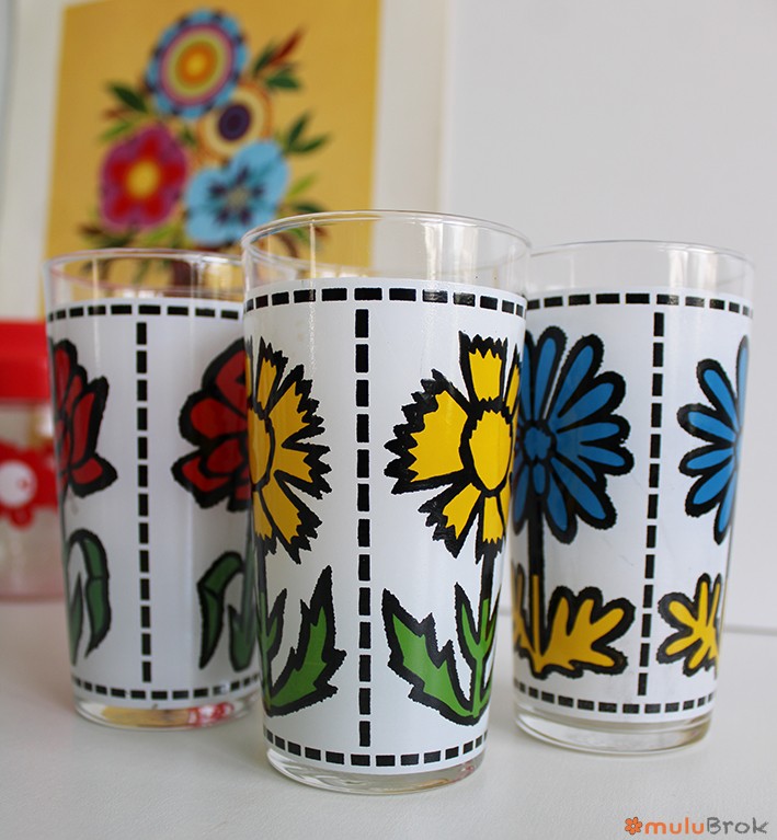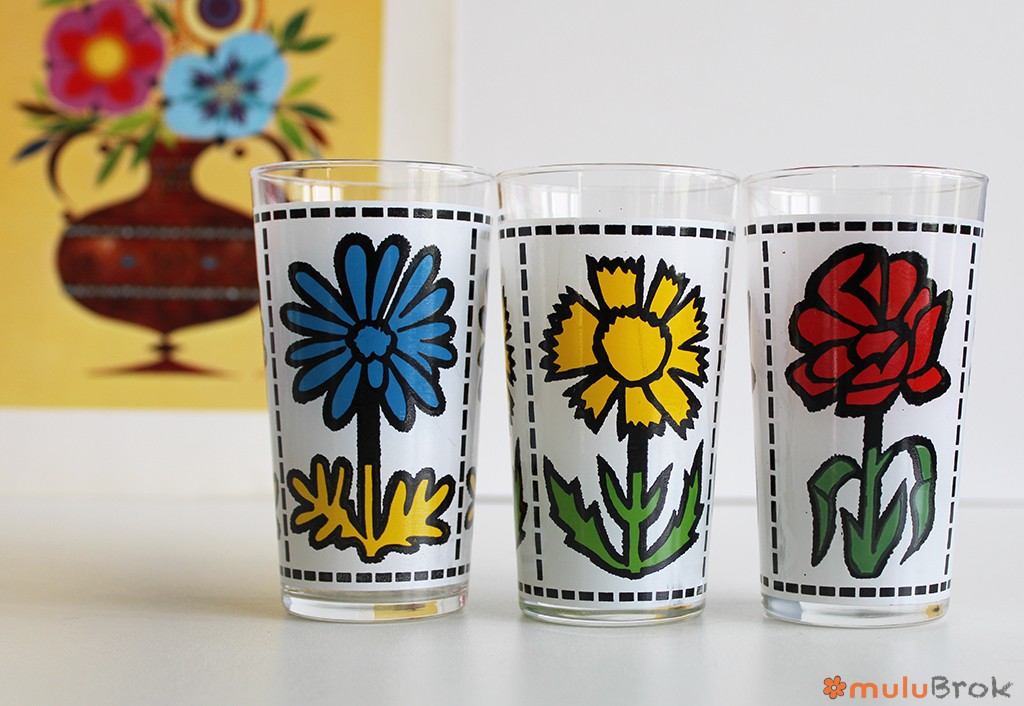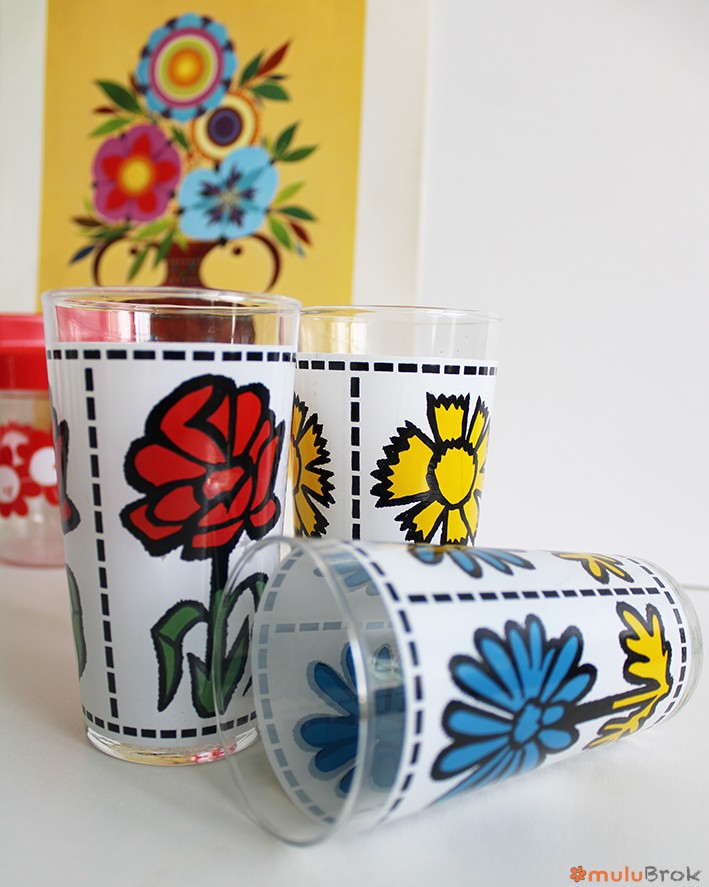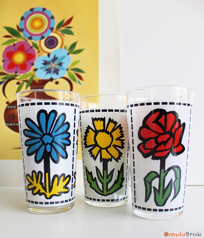Motif : Fleurs au couleur vive (rouge, bleu ou jaune).
