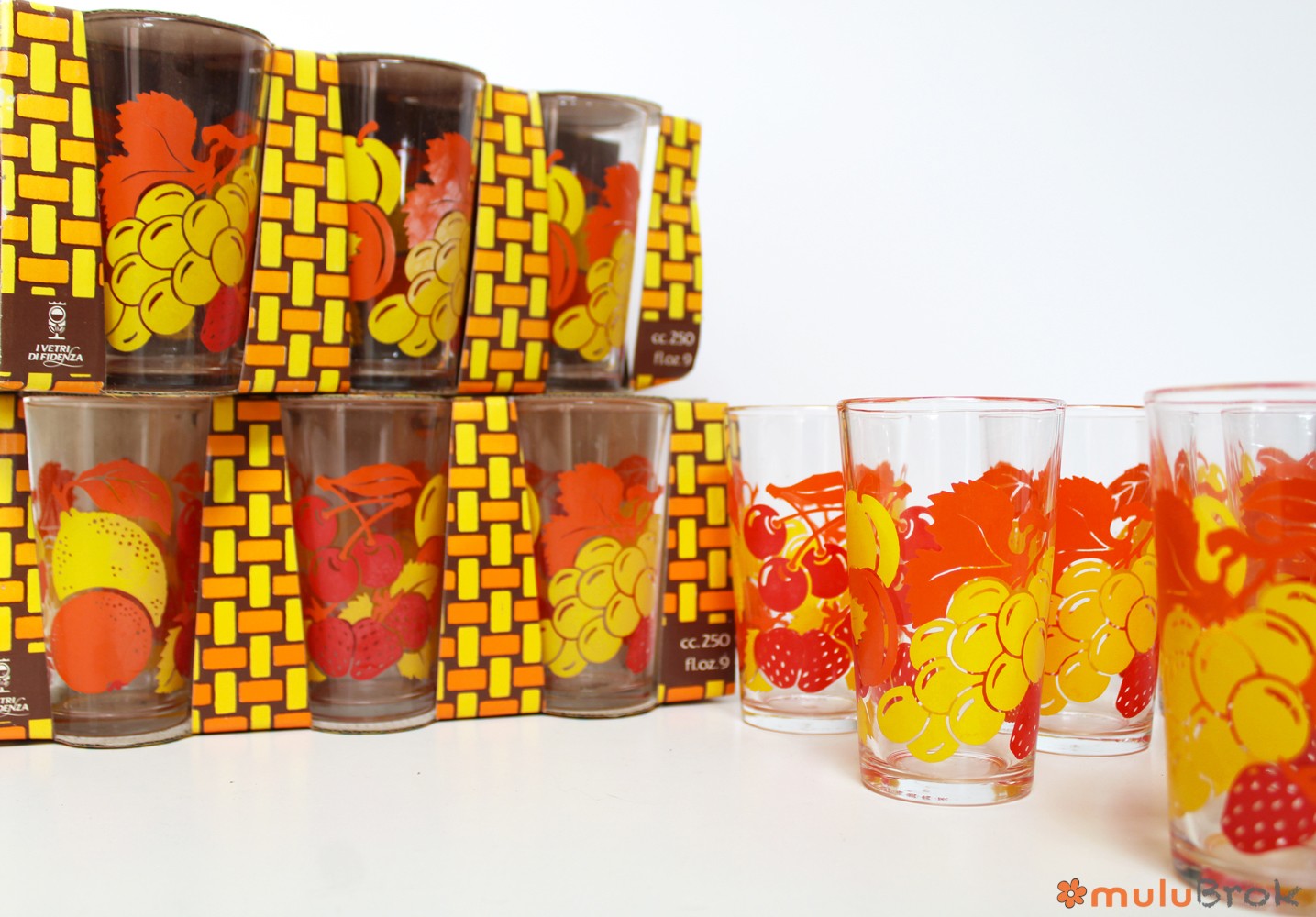 Motif fruits citron, orange, fraises, raisin, cerise, abricot, pêche.
