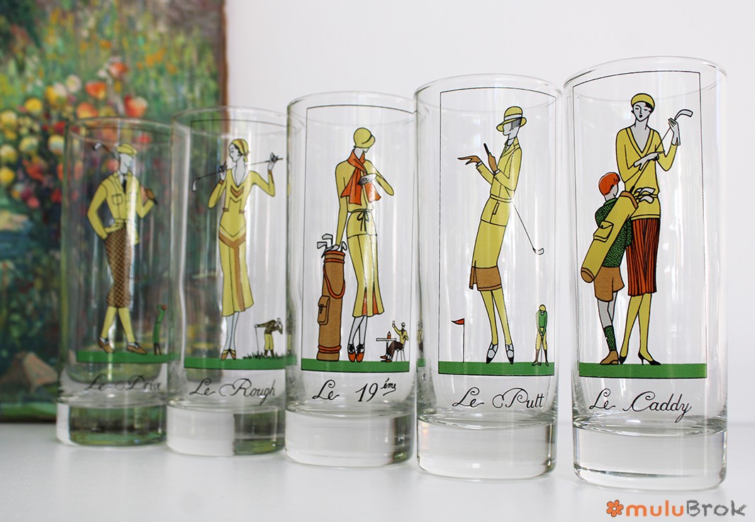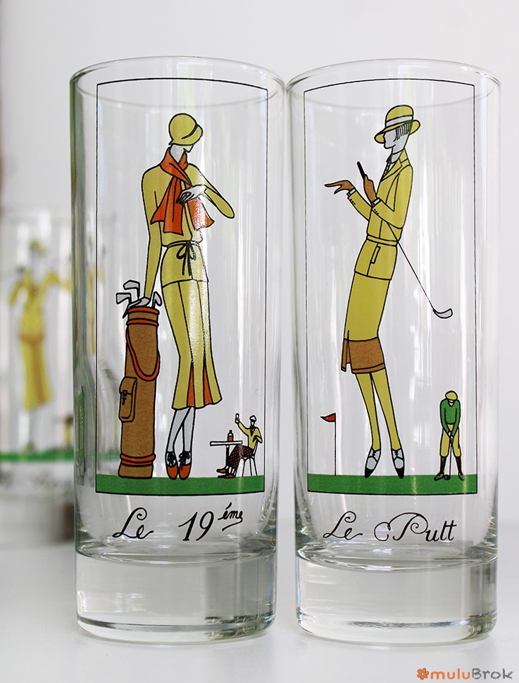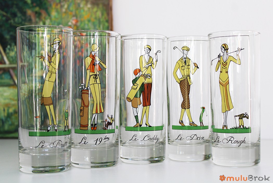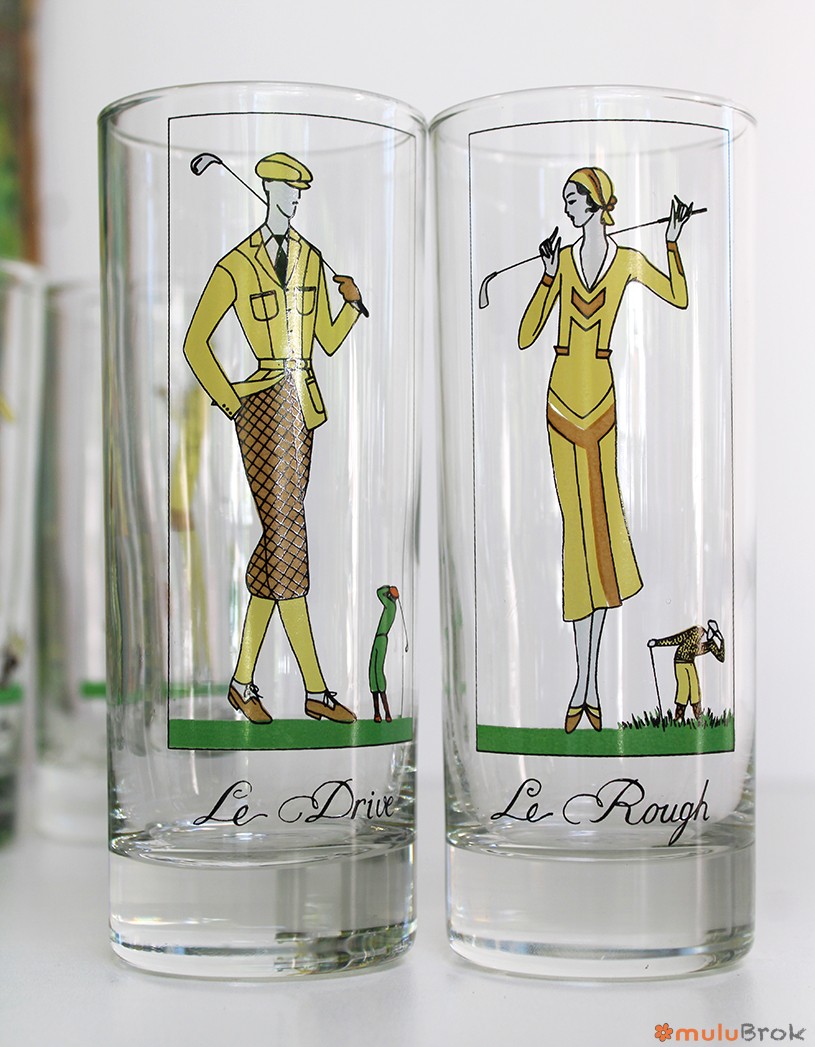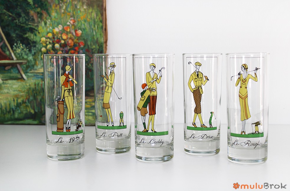 Verre vintage sur le thème du Golf.