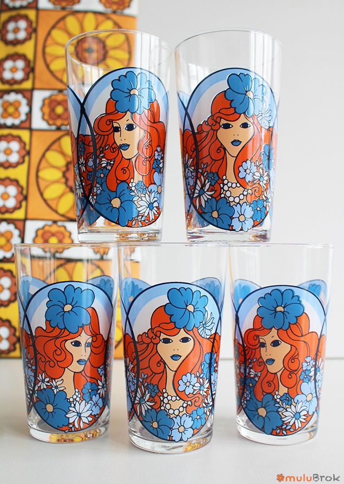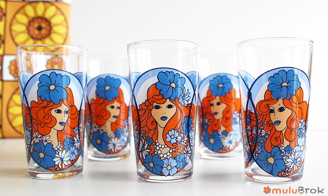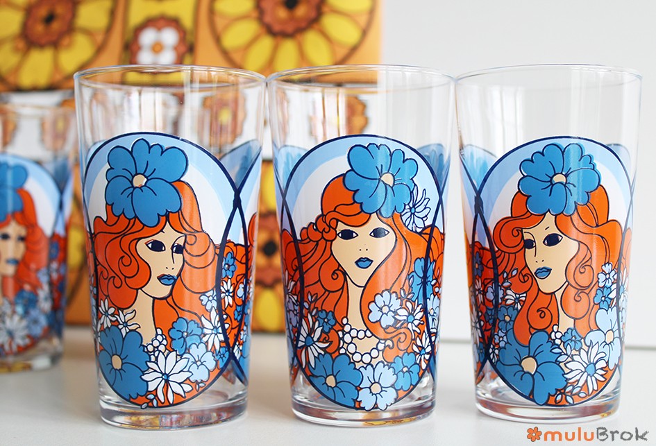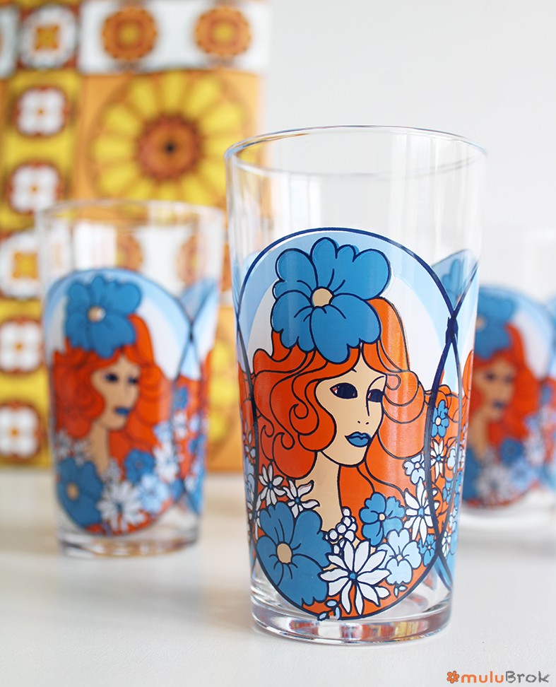 Verre vintage typique des années 1970 aux couleurs psychédéliques !
